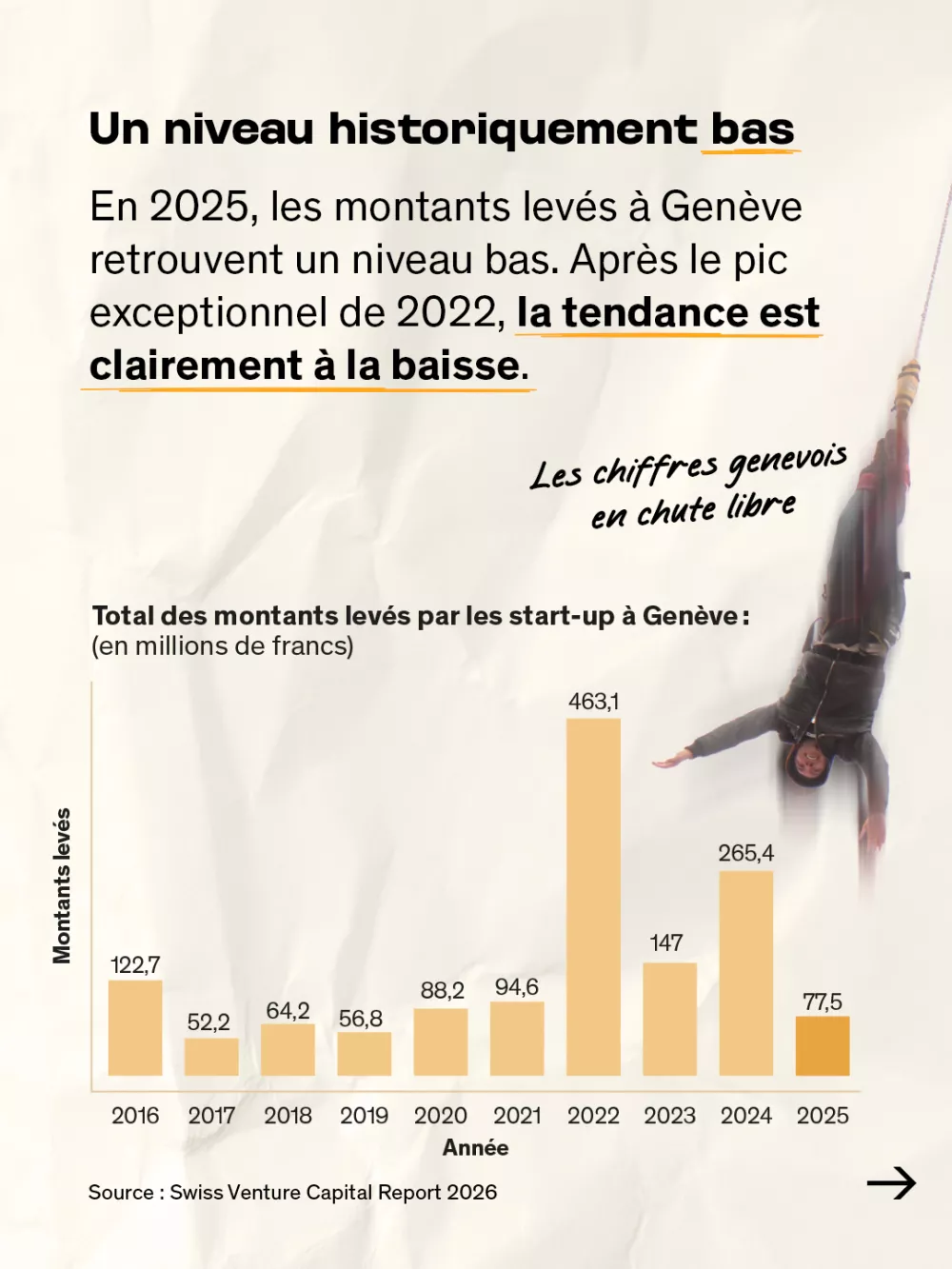 Le canton de Genève passe de 265 millions de francs investis en 2024 à 77,5 millions en 2025. S’agit-il d’un ralentissement temporaire ou d’un problème structurel de scale-up ?