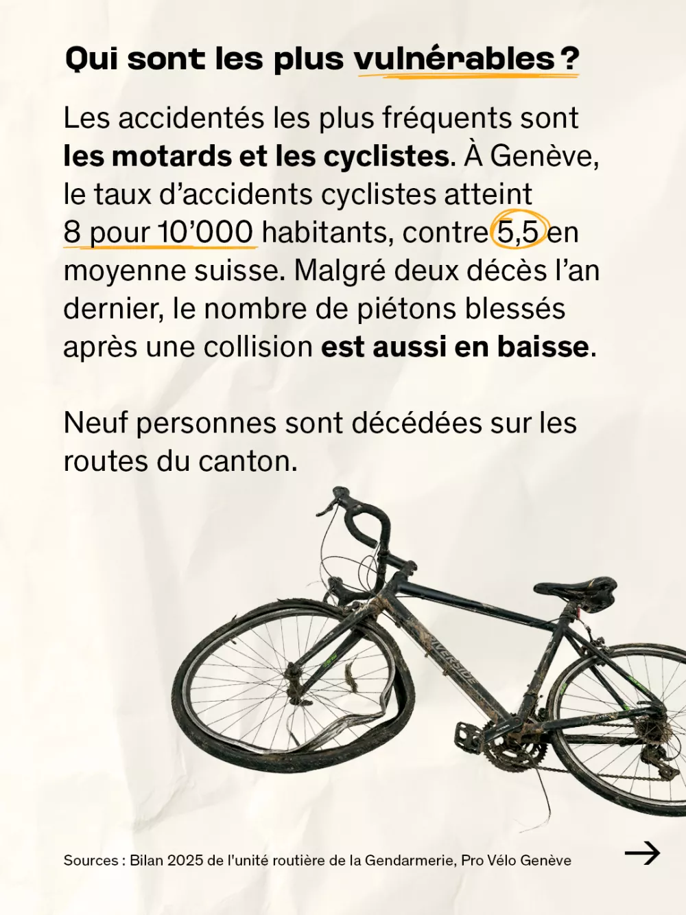 Au total, ces deux catégories cumulent 419 blessés. Plus de 37% des lésions sont jugées sérieuses, voire graves, et trois cas mettaient la vie en danger. Genève se distingue d’ailleurs au niveau national: le canton affiche un taux de 8 accidents impliquant des cyclistes pour 10'000 habitants, contre 5,5 en moyenne en Suisse, selon une étude de Pro Vélo.