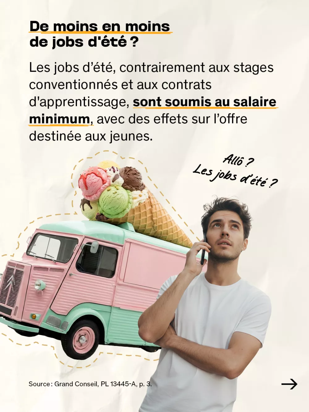 Le 8 mars 2026, les Genevois voteront sur une modification de la LIRT visant à introduire un régime salarial spécifique pour les jobs d’été. Le projet prévoit de rémunérer ces emplois à 75% du salaire minimum cantonal (18,44 francs de l’heure en 2026), pour une durée maximale de 60 jours par an et réservée aux étudiants durant leurs vacances. La majorité des députés estime que cette dérogation permettrait de relancer une offre en recul, sans remettre en cause le principe du salaire minimum pour les emplois ordinaires.