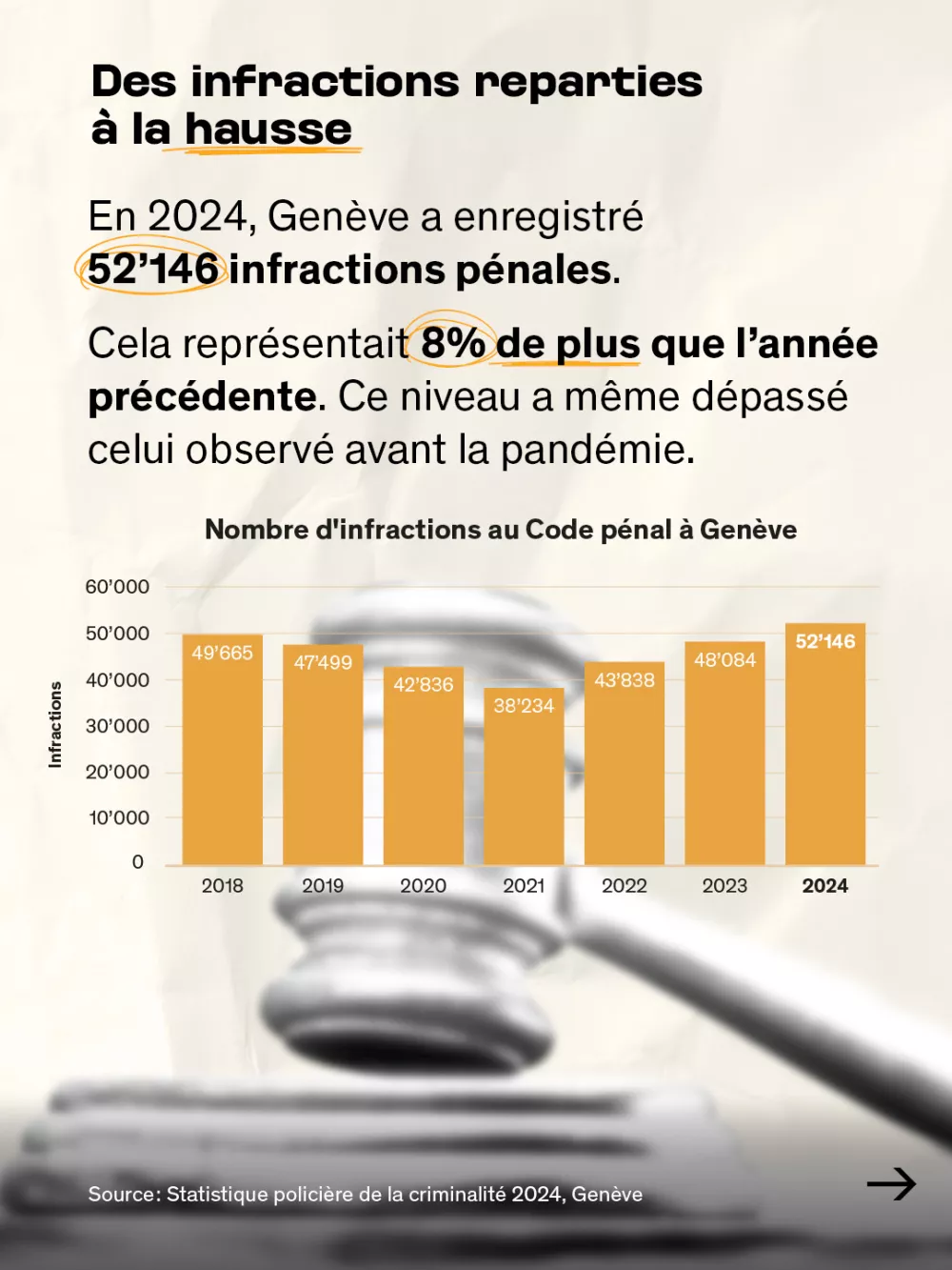 En 2024, le canton a enregistré 52’146 infractions pénales (+8 % en un an), dépassant les niveaux d’avant-pandémie.