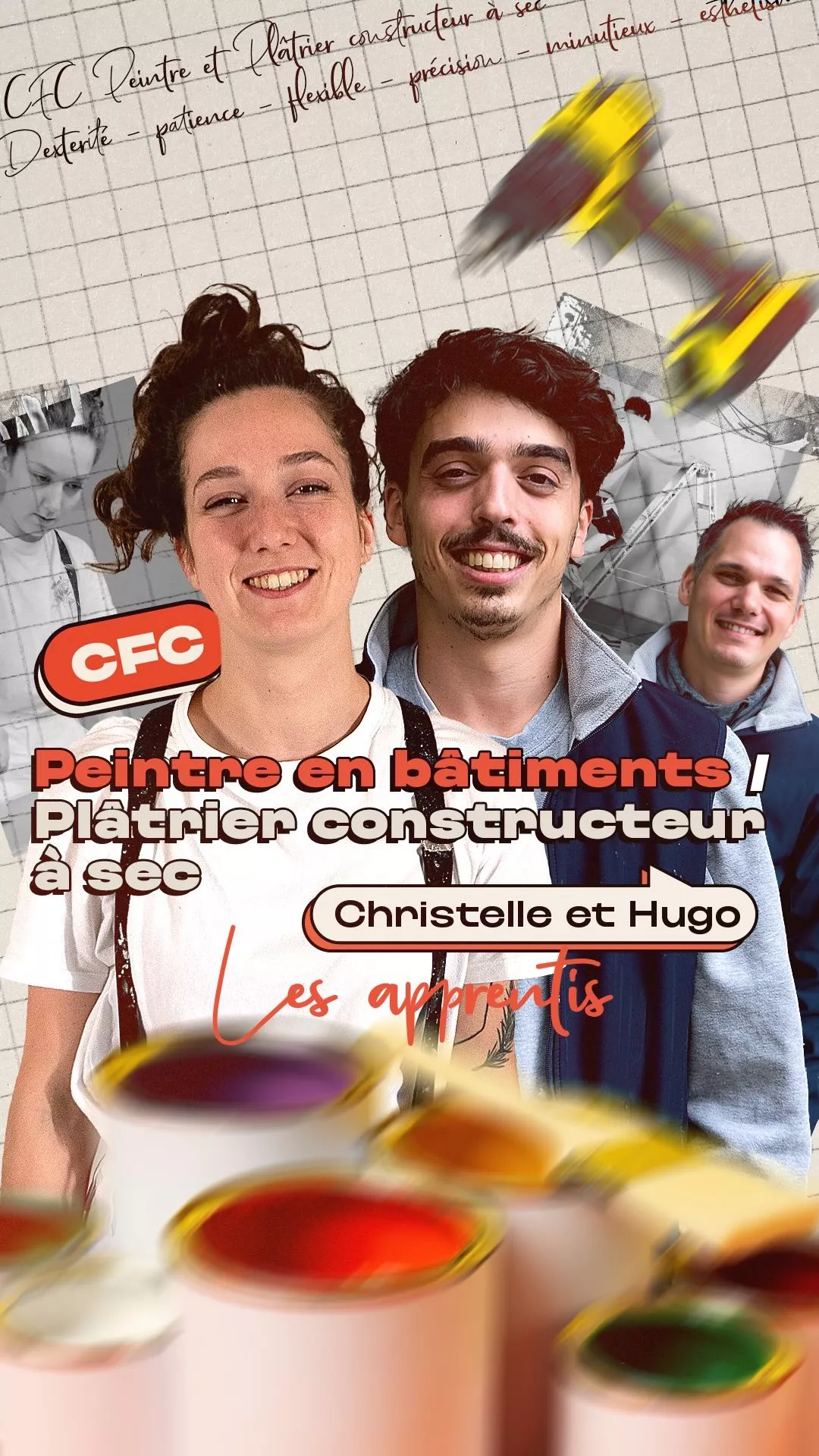Découvrez les CFC de plâtrier constructeur et de peintre en bâtiments avec Hugo, Christelle, et leur formateur José.