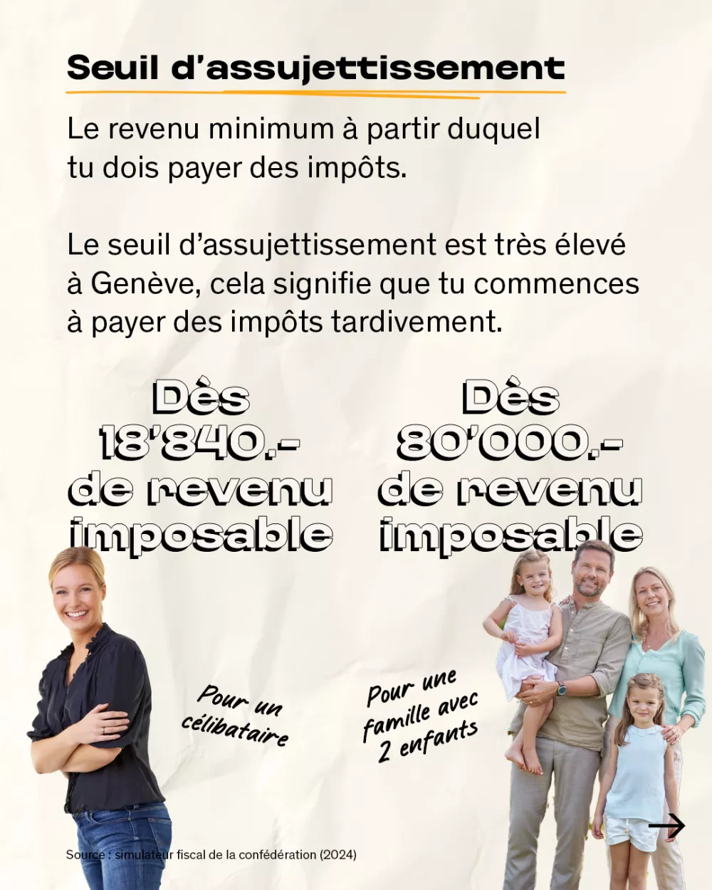 Le seuil d’assujettissement définit le revenu minimum à partir duquel une personne est imposable.
