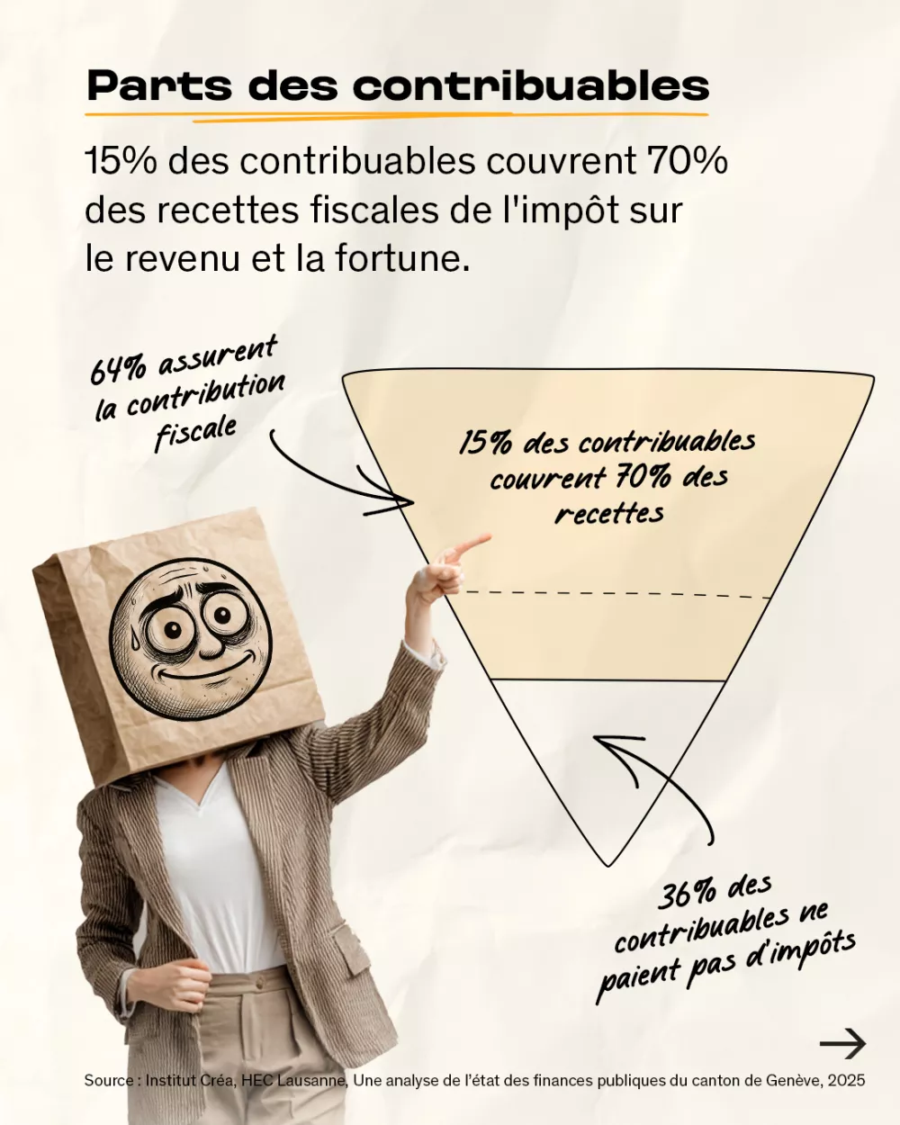 À Genève, une petite fraction des contribuables supporte une part importante du financement public, comme en témoignent ces chiffres :