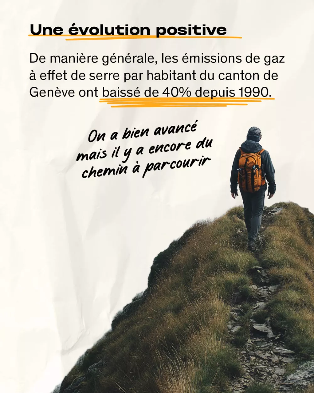 Le défi reste immense, mais la direction est claire et déjà engagée : depuis 1990, les émissions de gaz à effet de serre par habitant à Genève ont diminué de 40%. La tendance est donc à la baisse, et la dynamique se renforce.