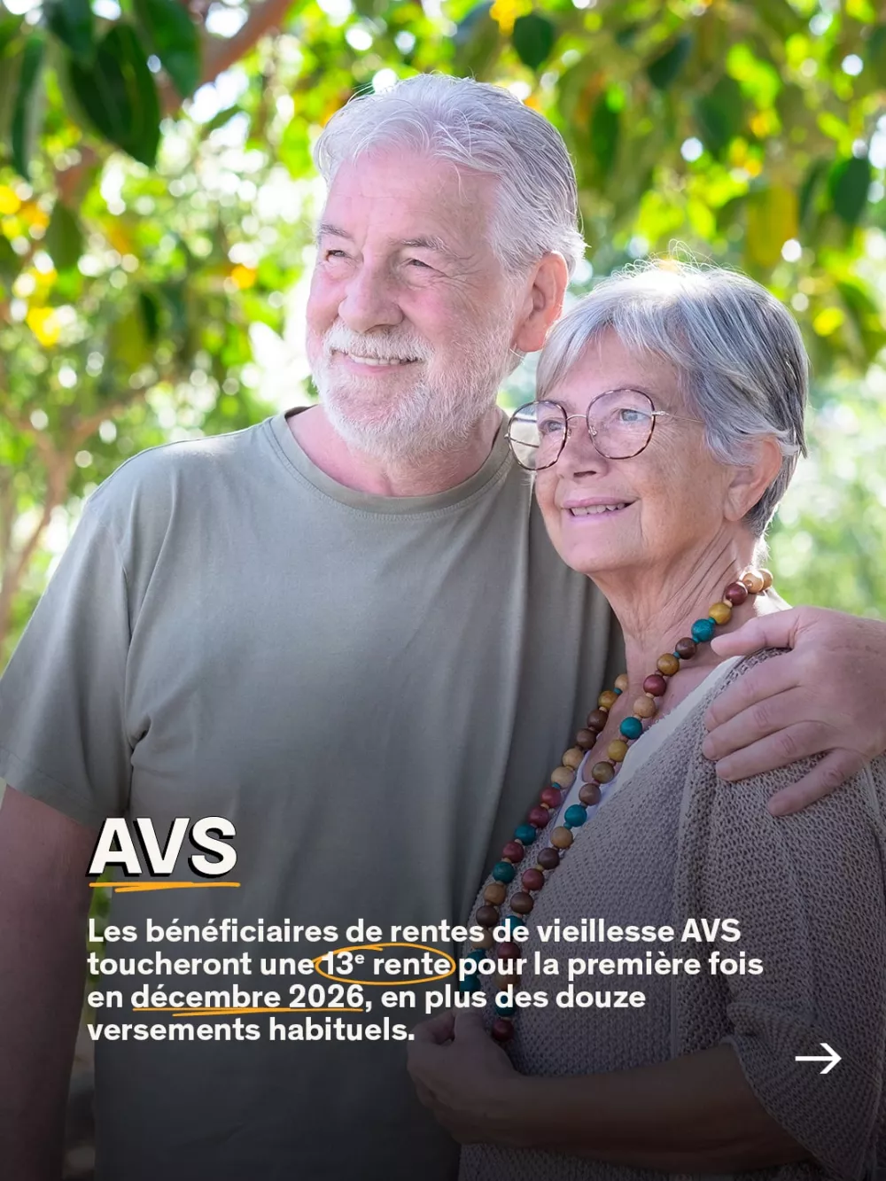 Les bénéficiaires de rentes de vieillesse AVS toucheront, pour la première fois, une 13e rente en décembre 2026, en plus des douze versements habituels. Une mesure qui a pour objectif d’améliorer le pouvoir d’achat des aînés.