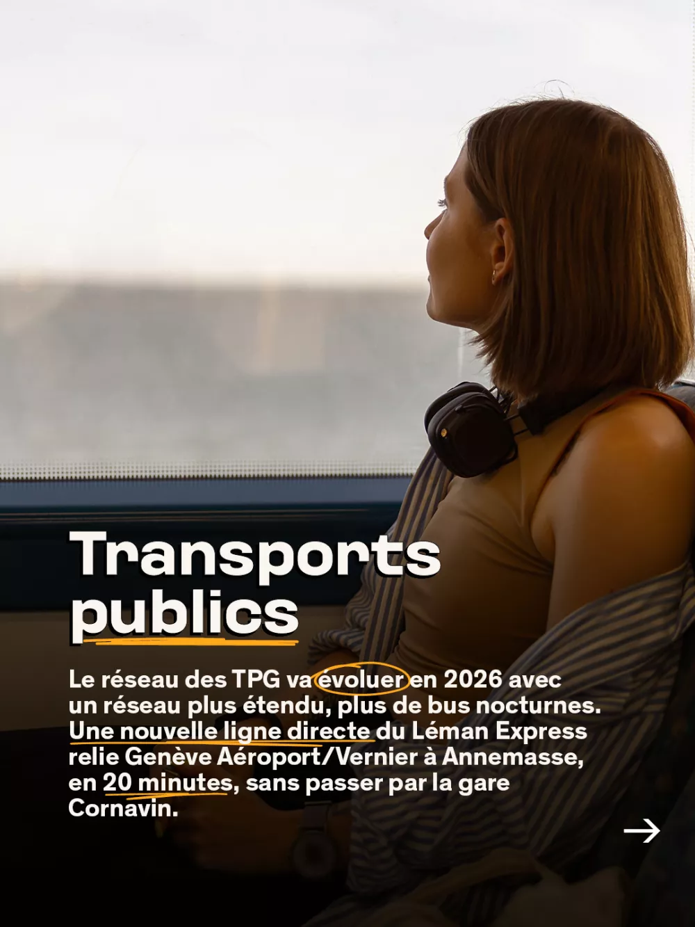 Le réseau des Transports Publics Genevois (TPG) évoluera également. Les usagers bénéficieront d’un réseau plus étendu et de bus nocturnes supplémentaires. Côté ferroviaire, une nouvelle ligne directe du Léman Express reliera Genève Aéroport/Vernier à Annemasse en seulement 20 minutes, sans passer par la gare Cornavin.