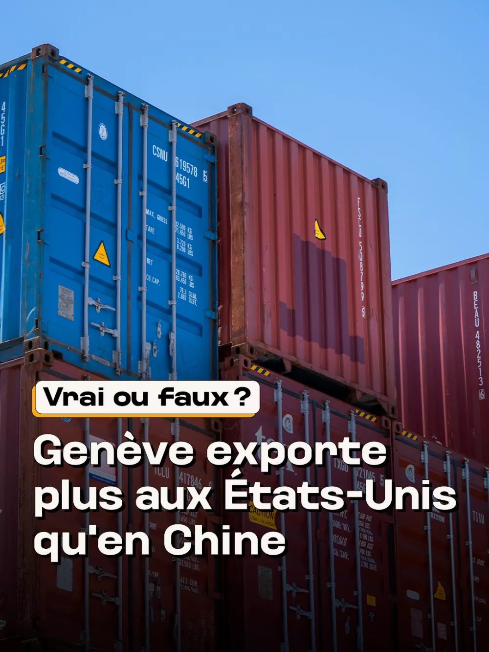 En 2024, les exportations du canton de Genève ont atteint environ 23 milliards de francs, selon l’Office cantonal de la statistique (OCSTAT), un léger recul de 0,9 % par rapport à 2023. Premier destinataire des marchandises genevoises : les États-Unis, avec 3,55 milliards de francs d’exportations, une hausse de 2,7% par rapport à l'année précédente. Les Etats-Unis se placent devant la Chine (3,12 milliards de francs) et la France (2 milliards de francs). Genève exporte bel et bien davantage vers les États-Unis que vers la Chine.