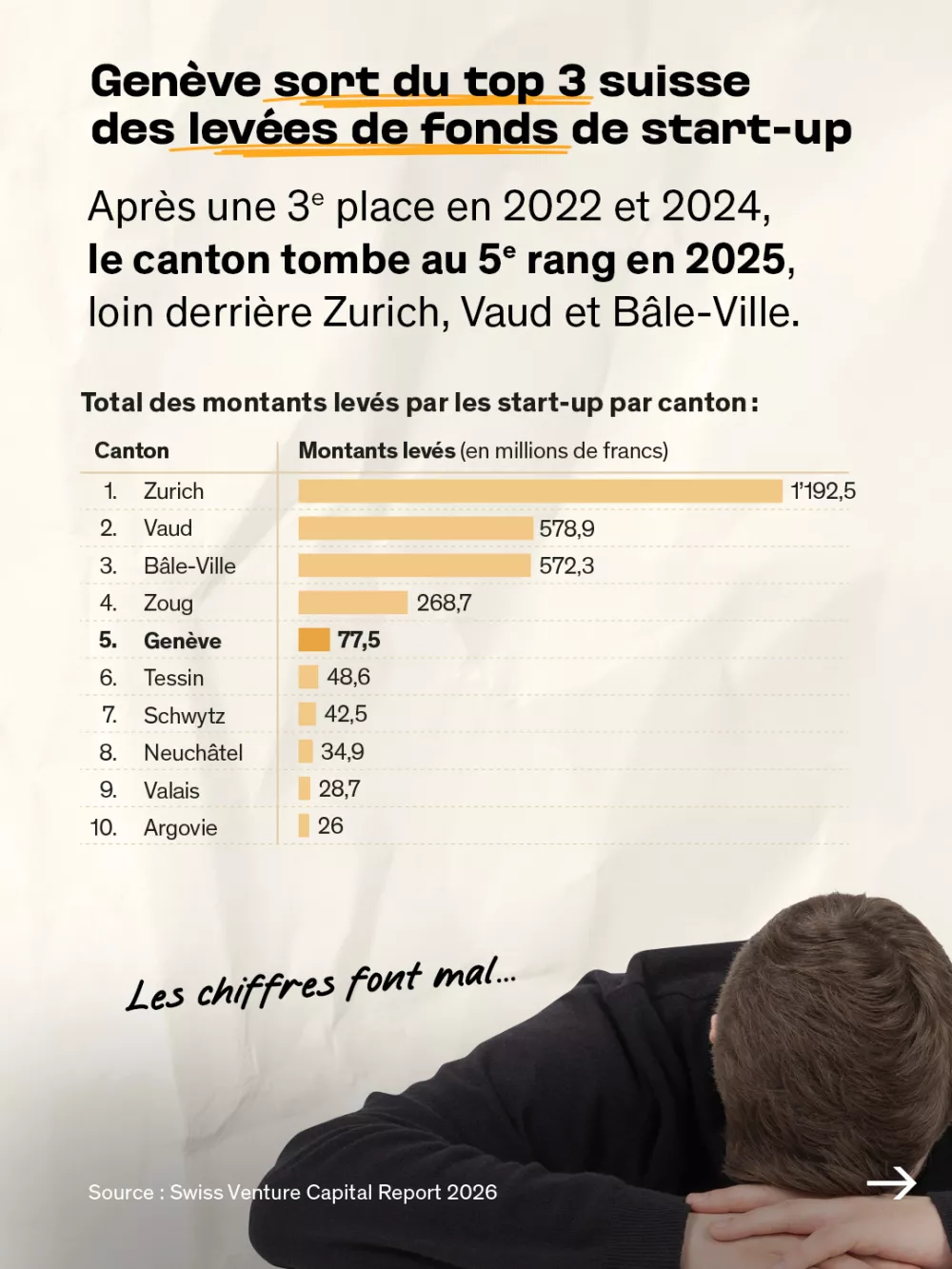 Le canton de Genève passe de 265 millions de francs investis en 2024 à 77,5 millions en 2025. S’agit-il d’un ralentissement temporaire ou d’un problème structurel de scale-up ?