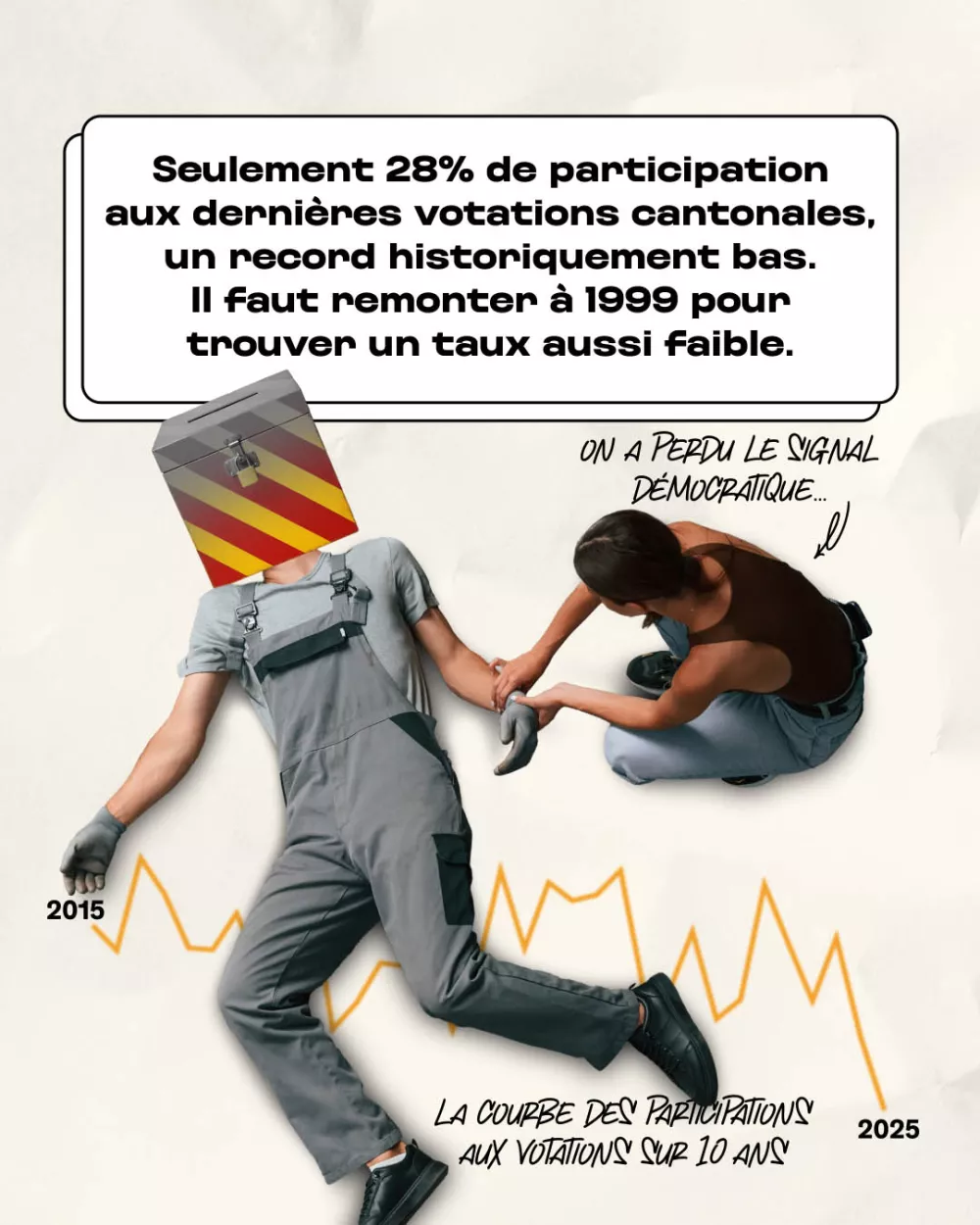 À Genève, la baisse de la participation électorale interroge. Seulement 28 % des Genevois se sont déplacés en mai dernier, contre une moyenne de 45,3 % entre 2015 et 2025. Il faut remonter à 1999 pour observer une participation aussi faible.