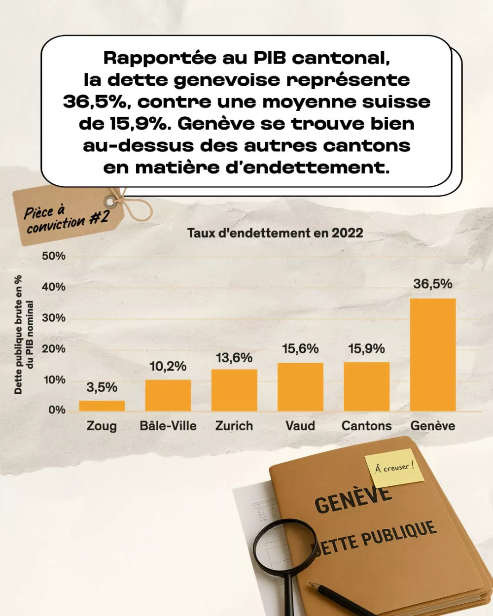 Avec un taux dâendettement de 36,5 %, notre canton affiche une situation budgĂ©taire unique en Suisse. Une charge publique qui pĂšse directement sur sa compĂ©titivitĂ©.