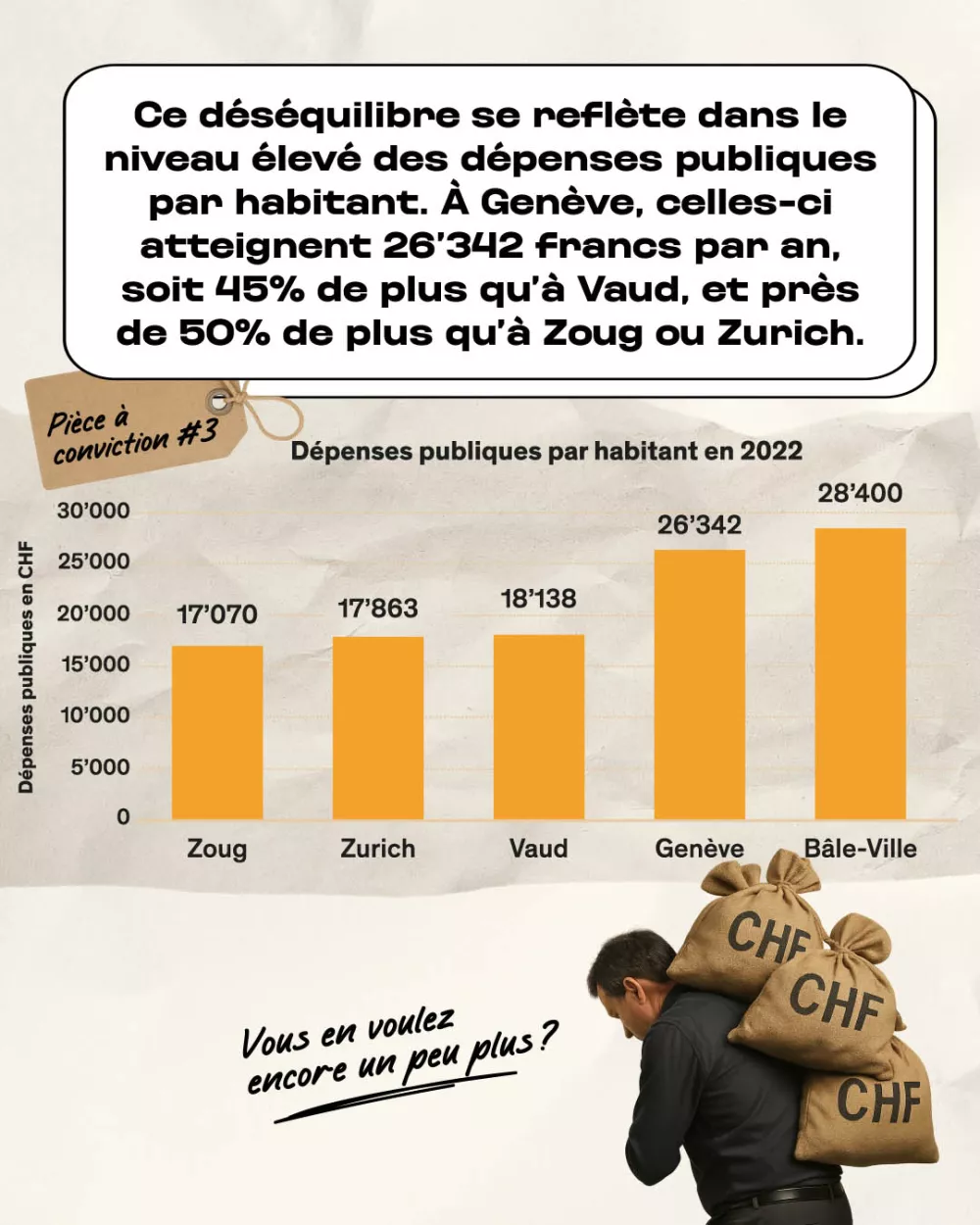 đ +45 % de dĂ©penses publiques par rapport au canton de Vaud