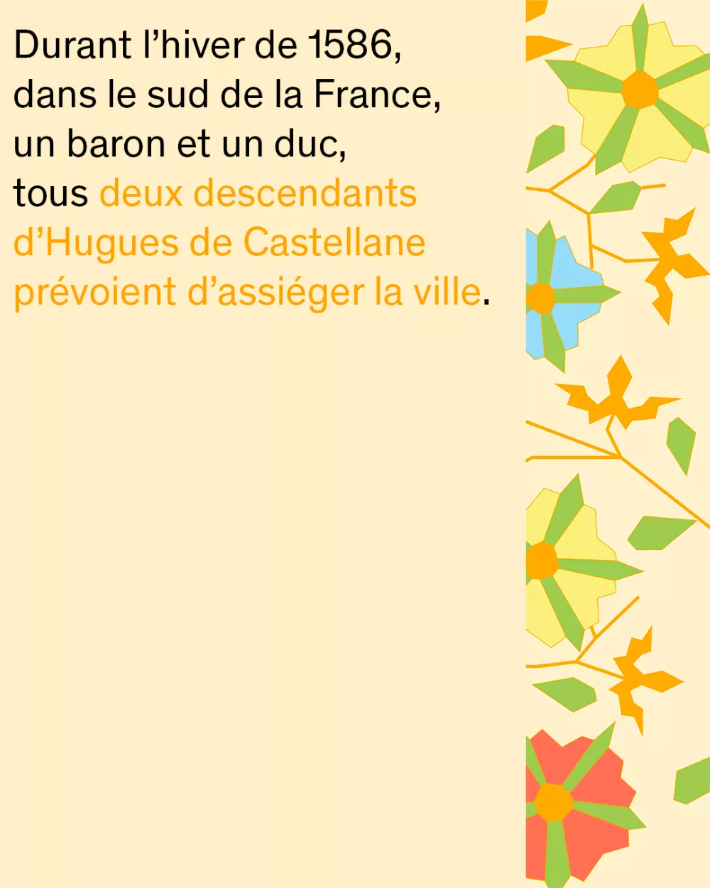 Et s'il y avait eu d'autres Escalades que celle de Genève? Dans le Sud de la France, en 1586, un baron et un duc tentent d'assiéger une ville, mais une courageuse habitante, Judith Andrau, va changer la trame de l'histoire. Son geste s'apparente à celui de la Mère Royaume en 1602 à Genève.