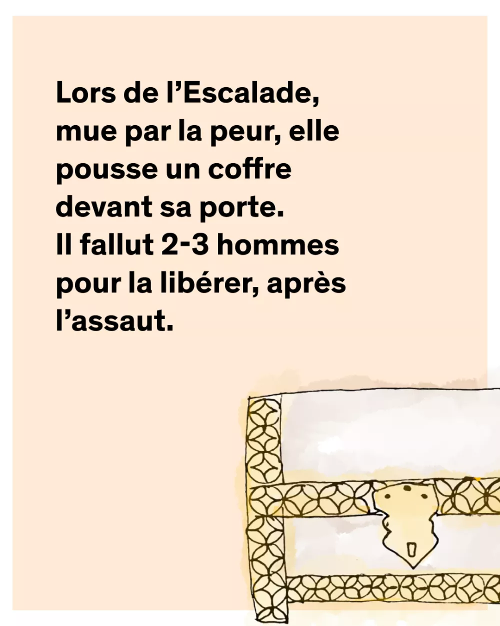 Durant la nuit de l'Escalade, Dame Piaget pousse un très lourd coffre devant sa porte pour se protéger des Savoyards. On dit qu'il a fallu deux à trois hommes pour la libérer après l'assaut! Découvrez l'histoire de cette héroïne de l'Escalade !