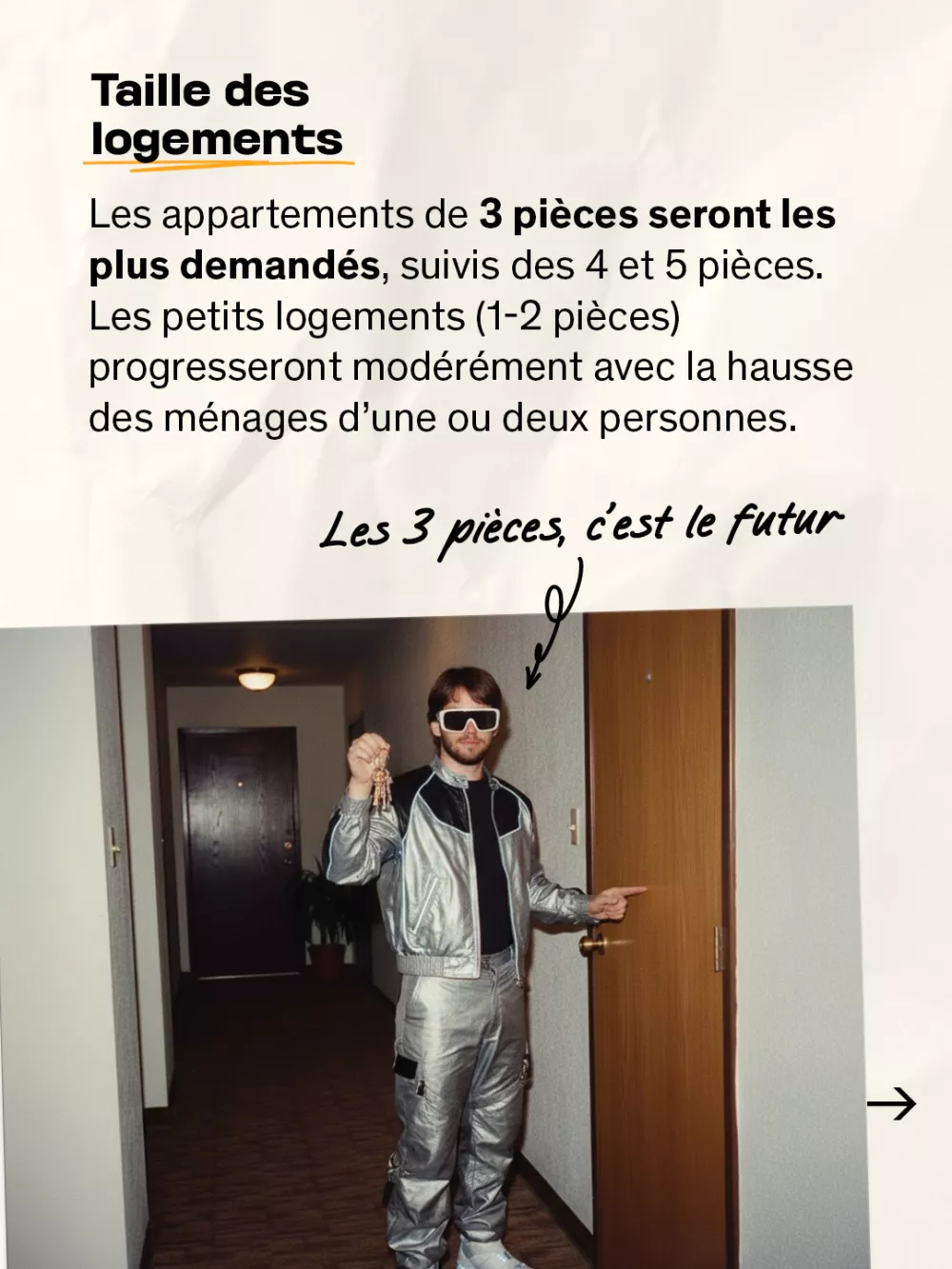 Les appartements de trois pièces seront les plus demandés, et les petits logements progresseront modérément avec la hausse des ménages d'une ou deux personnes.